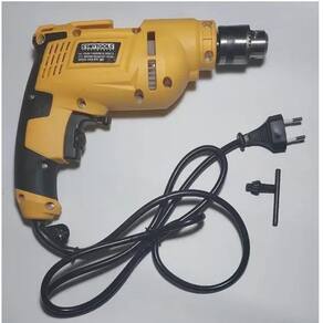 Para que serve / Funcionalidades Perfeita para perfurar madeira, metais e concreto leve. Ideal para fixação de objetos, instalações elétricas, montagens, reparos, obras pequenas e uso doméstico ou profissional. A função reversível auxilia no parafusamento e na retirada de brocas com mais facilidade. Descrição Ferramenta potente, compacta e versátil, essa furadeira de impacto oferece alto desempenho com 600W de potência no modo impacto e 300W em rotação. Chega a até 3.000 rotações por minuto, garantindo eficiência nas perfurações em diversos materiais. Conta com mandril de 10mm com chave de aperto para maior segurança, função reversível para aplicações versáteis, e cabo emborrachado que proporciona conforto no uso contínuo. É leve, ergonômica e segura, equipada com sistema de dupla isolação elétrica, sendo ideal para trabalhos em madeira, aço ou alvenaria leve. O que contém