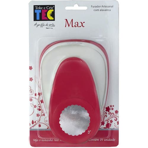 Furador Artesanal com Alavanca Max 3 Escalope Círculo Excelente para criação de etiquetas, tags, envelopes, cartões ou mesmo para servir de base em projetos maiores. Fácil utilização e requer menos esforço. Indicado para papéis de 120 até 220g Abertura de 2,5mm Medida Máxima do Desenho: 75mm Contém 1 Unidade Para maior maciez e durabilidade, este furador contém vaselina líquida, quando houver excesso eliminar furando algumas vezes em outros papéis. Desaconselhável para menores de 03 anos pois contém partes afiadas e peças pequenas, que podem ser perigosas para os mesmos. Possui uma tampa de segurança das partes afiadas.