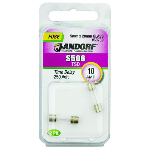Fusível de vidro de ação rápida Jandorf 10 A 250 volts 5 mm de diâmetro. x 20 mm C pacote com 2 para máxima proteção