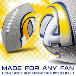 - Bola de futebol de espuma Los Angeles Rams: esta bola de futebol de espuma de poliuretano exclusiva é diferente de qualquer outra bola de futebol disponível, é especialmente projetada com logotipos 3D dando vida ao logotipo de seus times