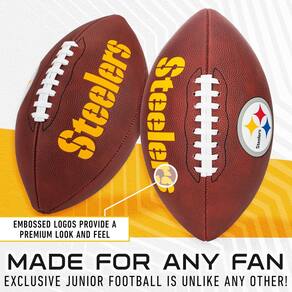 - Futebol americano Pittsburgh Steelers: este futebol juvenil júnior é a maneira perfeita para as crianças representarem seu time de futebol americano favorito da NFL enquanto jogam no quintal, na praia, na porta traseira ou em qualquer outro lugar!