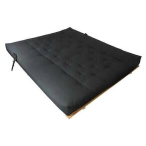 O colchão futon casal é fabricado em tecido de alta qualidade em sarja, seu enchimento é de mantas de algodão natural, manta fibra siliconada estruturado por espuma ortopédica D28. Possui amarras nas extremidades, a estrutura é produzida em madeira maciça nobre de grápia natural.