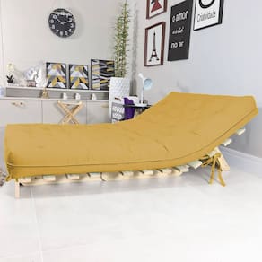 Futon Sofá Cama Casal Tokio com Base de Madeira Maciça O Futon Sofá Cama Casal Tokio é perfeito para quem busca elegância e versatilidade. Inspirado no estilo oriental, ele se adapta a diferentes decorações e funciona como sofá ou cama. Ideal para quem deseja conforto e praticidade. Características do Produto: Dimensões: Sofá: 130 cm (Largura) x 90 cm (Profundidade) x 55 cm (Altura do Assento) Cama: 130 cm (Largura) x 190 cm (Profundidade) x 27 cm (Altura) Especificações: Tecido: Impermeável Enchimento: Algodão natural, fibra siliconada e espuma ortopédica D28 Estrutura: Madeira maciça de pinus, sem pintura Peso: Futon 10 kg | Base 15 kg Capacidade: Suporta até 200 kg Itens Inclusos: 1 futon (130 cm x 190 cm x 16 cm) e 1 base de madeira Informações Importantes: Para uso interno; não recomendado para áreas externas descobertas. Entrega desmontada com manual de montagem. Limpeza: Use pano macio e levemente umedecido. Evite produtos abrasivos. Medidas para Entrega: Futon Embalado: 130 cm (Largura) x 40 cm (Altura) x 70 cm (Comprimento) Base de Madeira: 135 cm (Largura) x 27 cm (Altura) x 92 cm (Comprimento)