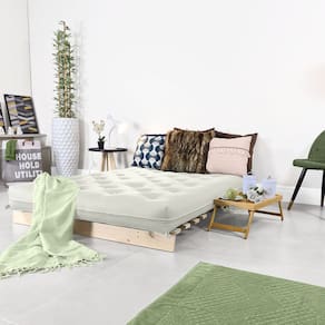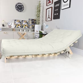 Futon Sofá Cama Casal Tokio com Base de Madeira Maciça O Futon Sofá Cama Casal Tokio é perfeito para quem busca elegância e versatilidade. Inspirado no estilo oriental, ele se adapta a diferentes decorações e funciona como sofá ou cama. Ideal para quem deseja conforto e praticidade. Características do Produto: Dimensões: Sofá: 130 cm (Largura) x 90 cm (Profundidade) x 55 cm (Altura do Assento) Cama: 130 cm (Largura) x 190 cm (Profundidade) x 27 cm (Altura) Especificações: Tecido: Impermeável Enchimento: Algodão natural, fibra siliconada e espuma ortopédica D28 Estrutura: Madeira maciça de pinus, sem pintura Peso: Futon 10 kg | Base 15 kg Capacidade: Suporta até 200 kg Itens Inclusos: 1 futon (130 cm x 190 cm x 16 cm) e 1 base de madeira Informações Importantes: Para uso interno; não recomendado para áreas externas descobertas. Entrega desmontada com manual de montagem. Limpeza: Use pano macio e levemente umedecido. Evite produtos abrasivos. Medidas para Entrega: Futon Embalado: 130 cm (Largura) x 40 cm (Altura) x 70 cm (Comprimento) Base de Madeira: 135 cm (Largura) x 27 cm (Altura) x 92 cm (Comprimento)