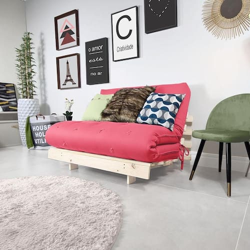 Futon Sofá Cama Casal Oriental com Base de Madeira