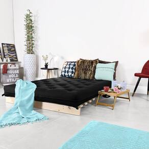 Futon Casal Tokio Sofa Cama Preto Com Madeira Maciça