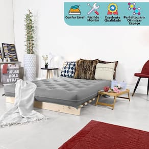 Versatilidade: Pode ser como sofá ou cama. Quando dobrado, transforma-se em um elegante sofá; quando aberto, torna-se um confortável colchão.Conforto: O enchimento de mantas de algodão natural e espuma ortopédica oferece frescor no verão e aconchego no inverno.Design Despojado: Este futon japonês traz leveza e sofisticação à decoração de qualquer ambiente.Funcionalidade: Ideal para relaxar, ouvir música, tocar violão, assistir a filmes ou receber visitas inesperadas.