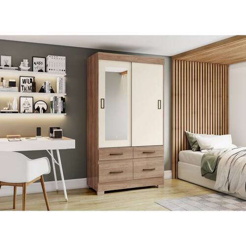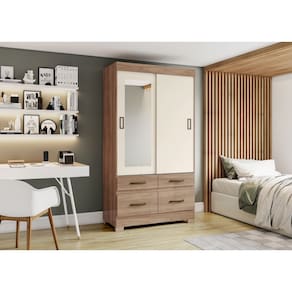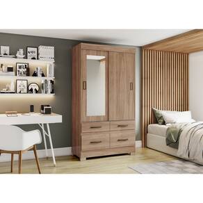 GUARDA-ROUPA BE25 02 PORTAS DESLIZANTES E 04 GAVETAS DIFERENCIAIS Cabideiro de madeira revestido Frentes de MDP 15 mm Gavetas com corrediças metálicas Puxadores em ABS TAMANHO A: 2005 X L: 1085 X P: 485 MM Grantia: 90 dias. Montagem: Montagem, desmontagem e outras instalações serão de responsabilidade do cliente. Não nos responsabilizamos, no ato da entrega, por subir escadas/elevadores ou pelo transporte por guincho em apartamentos. Eventuais despesas são de responsabilidade do comprador; Observações importantes: A tonalidade da cor do produto pode variar de acordo com a sua tela, a iluminação do ambiente ou sua percepção visual. Lembrando que são fotos ilustrativas tratadas em estúdios podendo haver pequena diferença nas cores. A montagem será de responsabilidade do comprador; Não nos responsabilizamos, no ato da entrega, por subir escadas/elevadores ou transporte por guincho em apartamentos. Eventuais despesas são de responsabilidade do comprador; Confira as dimensões deste produto e certifique-se de que passará normalmente por supostos elevadores, portas, escadas e/ou corredores de sua residência; Para mais informações, acesse nossa Central de Atendimento. Marca: LM DECOR