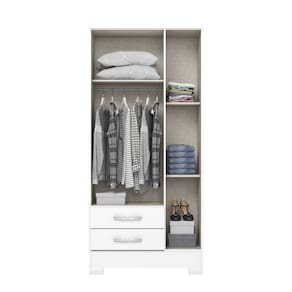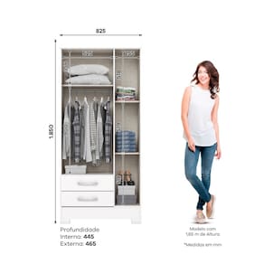 GUARDA-ROUPA BE16 03 PORTAS E 02 GAVETAS DIFERENCIAIS Cabideiro de madeira revestido Frentes de MDP 15 mm Gavetas com corrediças metálicas Puxadores em ABS TAMANHO A: 1850 X L: 825 X P: 465 MM Grantia: 90 dias. Montagem: Montagem, desmontagem e outras instalações serão de responsabilidade do cliente. Não nos responsabilizamos, no ato da entrega, por subir escadas/elevadores ou pelo transporte por guincho em apartamentos. Eventuais despesas são de responsabilidade do comprador; Observações importantes: A tonalidade da cor do produto pode variar de acordo com a sua tela, a iluminação do ambiente ou sua percepção visual. Lembrando que são fotos ilustrativas tratadas em estúdios podendo haver pequena diferença nas cores. A montagem será de responsabilidade do comprador; Não nos responsabilizamos, no ato da entrega, por subir escadas/elevadores ou transporte por guincho em apartamentos. Eventuais despesas são de responsabilidade do comprador; Confira as dimensões deste produto e certifique-se de que passará normalmente por supostos elevadores, portas, escadas e/ou corredores de sua residência; Para mais informações, acesse nossa Central de Atendimento. Marca: LM DECOR