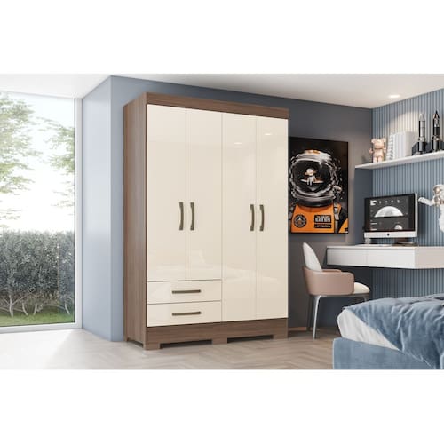 GUARDA-ROUPA BE12 04 PORTAS E 02 GAVETAS DIFERENCIAIS Cabideiro de madeira revestido Frentes de MDP 15 mm Gavetas com corrediças metálicas Puxadores em ABS TAMANHO A: 1850 X L: 1085 X P: 465 MM Grantia: 90 dias. Montagem: Montagem, desmontagem e outras instalações serão de responsabilidade do cliente. Não nos responsabilizamos, no ato da entrega, por subir escadas/elevadores ou pelo transporte por guincho em apartamentos. Eventuais despesas são de responsabilidade do comprador; Observações importantes: A tonalidade da cor do produto pode variar de acordo com a sua tela, a iluminação do ambiente ou sua percepção visual. Lembrando que são fotos ilustrativas tratadas em estúdios podendo haver pequena diferença nas cores. A montagem será de responsabilidade do comprador; Não nos responsabilizamos, no ato da entrega, por subir escadas/elevadores ou transporte por guincho em apartamentos. Eventuais despesas são de responsabilidade do comprador; Confira as dimensões deste produto e certifique-se de que passará normalmente por supostos elevadores, portas, escadas e/ou corredores de sua residência; Para mais informações, acesse nossa Central de Atendimento. Marca: LM DECOR