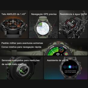 G6 trek 1 relógio unissex barato entrega rápida O smartwatch g6 trek 1 é a escolha ideal para quem busca tecnologia, estilo e funcionalidade no dia a dia. Com design moderno e unissex, este relógio inteligente combina recursos avançados com um visual esportivo e elegante. Compatível com android e ios, o g6 trek 1 oferece monitoramento fitness, notificações em tempo real, conectividade bluetooth, e ainda é à prova dágua, perfeito para quem pratica corrida, vai à academia ou apenas quer praticidade no pulso. Ideal para presentear, inclusive em datas especiais. Conteúdo da embalagem 1 relógio smartwatch g6 trek 1 1 pulseira ajustável instalada 1 cabo carregador magnético usb 1 manual do usuário Características Modelo: g6 trek 1 Compatível com android e ios Tela sensível ao toque touchscreen Visual moderno e esportivo Design unissex masculino e feminino Pulseira confortável e ajustável Notificações de chamadas e mensagens Monitor de atividades físicas Controle de sono Á prova dágua e resistente à suor Ideal para academia, corrida e uso diário Com inteligência artificial para dados fitness Conexão bluetooth rápida e estável Gps integrado Especificações Tela: 1.43 hd touch, 56.7 mm Conectividade: bluetooth 3.0 ou superior Compatibilidade: android 5.0+ / ios 9.0+ Bateria: 450mah duração média de 2 a 5 dias Tempo de carregamento: aproximadamente 2 horas Funções: passômetro, contador de calorias, notificações, controle de câmera, alarme, entre outros. Grau de proteção: ip67 à prova dágua para uso cotidiano Garanta já o seu smartwatch g6 trek 1 e leve tecnologia e estilo para o seu pulso com o melhor custo-benefício do mercado limitado Marca: Não Informado Ean: 7905341722082