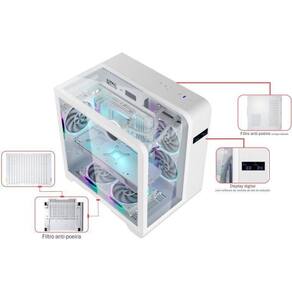 Gab aquario top vidro cyberpunk white w8ki c/display digital - Gabinete gamer cyberpunk white m.Atx - cg-w8ki Painel, parte superior e vidro lateral temperado 4mm Filtro anti-poeira inferior de encaixe modelo gaveta Hd áudio Manual de instrução Botão power, led, e reset Com display digital Gabinete gamer cyberpunk white m.Atx - cg-w8ki Especificações técnicas: Placa-mãe compatível: micro atx e itx Dimensões do chassi : aLP 365x270x370mm Dimensões do gabinete: aLP 380x280x375mm Altura da cpu cooler: até 157mm Placa de vídeo: até 280mm Slots de expansão: 04 Fontes de alimentação compatíveis: padrão atx Portas usb: 1 usb2.0 + 1 usb3.2gen1 typea Baias internas: 13.5+2x2.5 ou 32.5 Chassi 0,5mm Refrigeração: Traseira: 1 fan 120x120mm Vertical: 2 fans 120x120mm Inferior: 2 fans 120x120mm Compatível com water cooler de 120mm traseiro, 240mm inferior/interna vertical fans opcionais não acompanham o produto, devem ser adquiridos separadamente Embalagem: Dimensões cxlxa : 445x345x460mm Quantidade: 01 peça por caixa Peso líquido: 5,2kg Peso bruto: 6,5kg Características gerais do produto: Material: metal vidro : 90 Marca: Não Informado