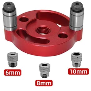 Gabarito Centralizador para Furação 6 a 10mm com 2 Garras Cavilhas Profissional Dremax - Marca: Dremax - Referência: GAB012 - Acompanha 3 buchas: 6mm, 8mm e 10mm - Com 2 garras para ajuste rápido e correta centralização do furo - Espessura máxima do furo de 65mm - Indicado para rápida furação em madeira para cavilhas e outras aplicações - Fabricado em Liga de alumínio - Superfície anodizada, com alta dureza superficial e resistência ao desgaste e ferrugem - As linhas centrais asseguram o alinhamento exato ao perfurar em diferentes superfícies - Precisão e agilidade em trabalhos de furação em chapas de madeira - : 90 dias