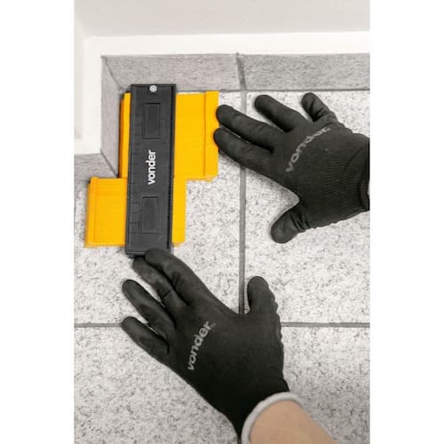 Possui fácil aplicação, basta pressionar as cerdas do gabarito contra o objeto que deseja copiar o contorno.