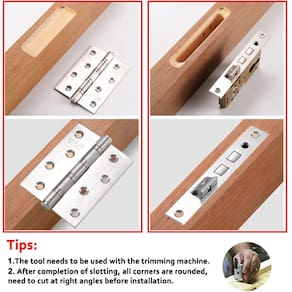-?DICAS?A placa de perfuração com dobradiça precisa ser usada com a máquina de corte. Após a conclusão da ranhura, todos os cantos são arredondados e precisam ser reparados em um ângulo reto antes da instalação.