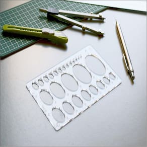 Gabarito com 26 elipses de 40 graus com raios de 2mm á 50mm. Acrílico transparente. Características : Espessura : 2mm(padrão desenho técnico) Adicionas : sem chanfro e com marcações Marca : fenix