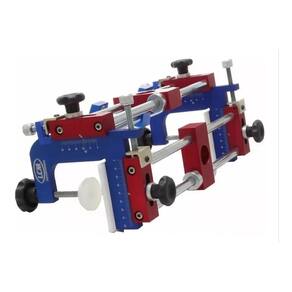 CARACTERÍSTICAS: Gabarito para rasgo de fechadura com furadeira manual para portas de madeira. Este gabarito proporciona um acabamento de alta precisão e conta com um exclusivo sistema de duas Guias lineares para fresas de 15mm e 20mm. O Guia frontal usinagem do rasgo da fechadura e o Guia lateral para usinagem da maçaneta e buraco do miolo da chave.