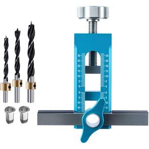 Especificação Material: Liga de alumínio Cor: azul Tamanho da embalagem: 15 × 12 × 6 cm Peso da embalagem: 0,48 kg Lista de embalagem: 1 x gabarito de instalação de porta de gabinete, 3 x furadeira com colar de 3 pontos, 1 x chave tipo L, 2 x bucha de perfuração Feito de liga de alumínio durável, este gabarito de instalação de porta de gabinete oferece excelente resistência e estabilidade, ajudando você a fazer furos de dobradiça precisos e montar portas rapidamente com precisão repetível. O gabarito suporta tábuas de madeira de 10 a 40 mm de espessura e oferece uma faixa de ajuste vertical de até 55 mm, permitindo combinar diferentes tamanhos de portas e posições de instalação com facilidade e confiança. Fornecido com brocas e colares de parada, ele ajuda a controlar a profundidade de perfuração para reduzir erros, rebarbas e danos na superfície, tornando-o ideal para marceneiros profissionais ou projetos domésticos de bricolage. Materiais resistentes à corrosão e um design robusto de suporte de carga garantem um desempenho confiável durante o uso a longo prazo, mantendo um alinhamento suave mesmo quando se trabalha com armários pesados ou portas de cozinha. Adequado para armários com estrutura frontal e sem moldura, armários suspensos, portas de guarda-roupa e painéis com dobradiças inferiores, este gabarito versátil acelera a instalação e melhora a consistência e a qualidade do acabamento.