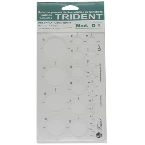 Características: -gabarito circulógrafo em milímetros -22 círculos de 1mm a 35mm -modelo: D-1 -medidas do gabarito: 16,0x9,5cm -fabricado em acrílico Ean: 7897876100322