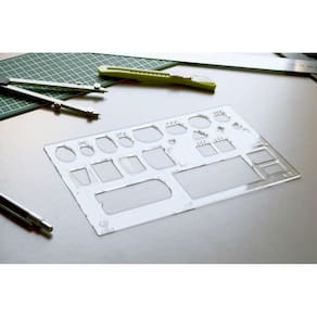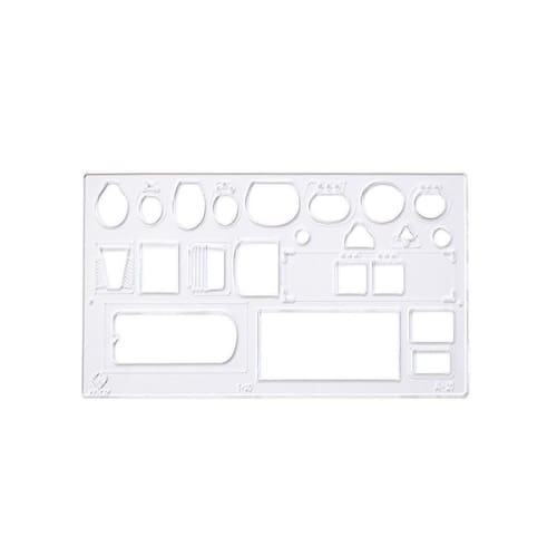 Gabarito de sanitários com perifs externos e internos - escala 1:20 - 23x13cm Características : Espessura : 2mm padrão desenho técnico Adicionas : sem chanfro e com marcações Marca : fenix