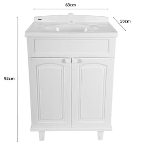 Material: poliestireno Dimensões: 63 x 50 x 92cm apoiado no chão, com pés 63 x 50 x 81cm suspenso, fixado a parede Possui porta sabonete: sim Possui furo para torneira: apenas marcação Quantidade de portas: 02 portas Quantidade de prateleiras: 01 prateleira Quantidade de gavetas: 0 gavetas Quantidade de pés: 04 pés Locais sugeridos: banheiros e lavabos Acabamento: brilhante Marca: astra Cor: branca Garantia do fabricante: 90 dias