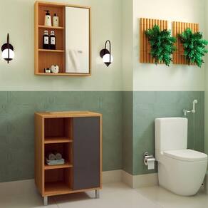 O Conjunto CJ7250 da Milani Store é a solução para transformar seu banheiro com estilo e funcionalidade. A Espelheira conta com uma porta de correr, espelho integrado e 6 nichos, oferecendo organização e elegância ao ambiente. Já o Gabinete também possui uma porta de correr, oferece espaço interno e design moderno, garantindo praticidade. Este conjunto é ideal para otimizar e valorizar o seu ambiente. Este móvel chegará na sua casa separado em 02 volumes.