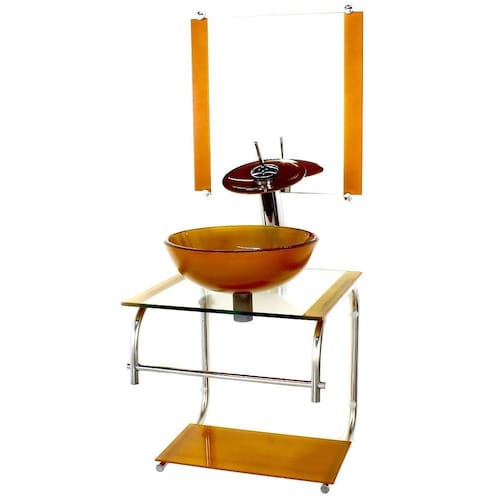 Gabinete 40cm de vidro inox cuba redonda dourado real Os nossos gabinetes são indicados para projetos arrojados e de muito bom gosto, além de valorizar o seu ambiente com sofisticação em uma decoração de alto padrão, ele consegue usufruir das vantagens que o vidro proporciona e gerar uma durabilidade indiscutível, sem contar que com as várias opções de cores, você sempre poderá encontrar uma cor perfeita para o seu banheiro. os vidros são pintados com tinta de alta performance, o que lhe garante a permanência da cor . Itens inclusos: - bancada de vidro com furo para instalação da torneira 3,5cm diâmetro e da válvula click 4,5cm diâmetro - cuba de vidro redonda - espelho - estrutura e porta toalha de inox, alta resistência a umidade e não enferruja - kit parafusos completo para instalação - prateleira de vidro da bancada - válvula click Dimensões: - bancada de vidro: 40 x 40cm largura x profundidade - cuba de vidro redonda: 31cm de diâmetro - prateleira bancada: 40 x 20cm largura x profundidade - espelho: 40 x 40cm largura x altura - porta toalha: 40cm largura - válvula: 1 1/4 Espessuras: - bancada de vidro: 8 mm - cuba de vidro: 10 mm - espelho: 3 mm - prateleira bancada: 5 mm : 12 meses conforme política de troca e devoluções . Atenção: preço referente somente ao gabinete, não acompanha torneira. Montagem: montagem e instalação não inclusa na venda ou preço do produto, elas são de inteira responsabilidade do cliente. Imagens ilustrativas.