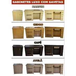 Gabinete para máquina de costura Singer O modelo mais completo! Com 5 gavetas espaçosas, o Gabinete Luxo é perfeito para quem quer costurar com conforto e manter tudo sempre organizado. Linhas, agulhas, tesouras, fitas métricas e todas as suas ferramentas de costura terão um lugar só — prático, elegante e funcional. Material : MDF