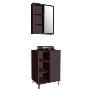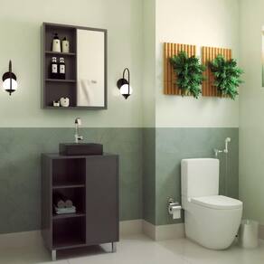 O conjunto para banheiro CJ7250 é produzido em MDP 15mm e acabamento FF fosco. O gabinete possui 1 porta de correr, 3 prateleiras que suportam 10kgs cada e 4 pés em ABS com altura de 13cm. Estrututa do fundo em 3mm. A espelheira possui 1 porta de correr com espelho 2mm colado, 2 prateleira internas e 2 prateleiras externas. Necessita fixação na parede e acompanha os parafusos para a fixação. Produto suporta até 45kgs. Conteúdo da embalagem: móvel, ferragens e manual de montagem. A fixação das peças e/ou acessórios é feita por parafusos e cavilhas. Para uma limpeza mais efetiva, utilizar apenas pano macio umedecido e sabão neutro. Não utilizar produtos abrasivos. Garantia de 03 meses contra defeitos de fabricação. Medidas do produto gabinete (AxLxP): 83x60x40cm. Medidas do produto espelheira (AxLxP): 65x60x14cm. Peso total do produto: 28,35kgs. Produto acompanha cuba preta em mármore sintético.