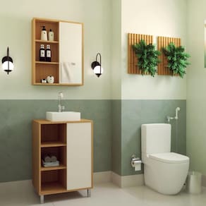 O conjunto para banheiro CJ7250 é produzido em MDP 15mm e acabamento FF fosco. O gabinete possui 1 porta de correr, 3 prateleiras que suportam 10kgs cada e 4 pés em ABS com altura de 13cm. Estrututa do fundo em 3mm. A espelheira possui 1 porta de correr com espelho 2mm colado, 2 prateleira internas e 2 prateleiras externas. Necessita fixação na parede e acompanha os parafusos para a fixação. Produto suporta até 45kgs. Conteúdo da embalagem: móvel, ferragens e manual de montagem. A fixação das peças e/ou acessórios é feita por parafusos e cavilhas. Para uma limpeza mais efetiva, utilizar apenas pano macio umedecido e sabão neutro. Não utilizar produtos abrasivos. Garantia de 03 meses contra defeitos de fabricação. Medidas do produto gabinete (AxLxP): 83x60x40cm. Medidas do produto espelheira (AxLxP): 65x60x14cm. Peso total do produto: 28,35kgs. Produto acompanha cuba branca em mármore sintético. Marca: Não Informado