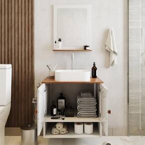 Com um design moderno, ela inclui uma cuba espaçosa e um espelho que amplia a sensação de espaço, tornando seu ambiente mais acolhedor.