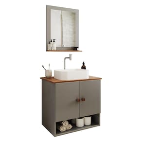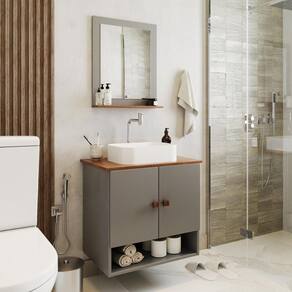 Com um design moderno, ela inclui uma cuba espaçosa e um espelho que amplia a sensação de espaço, tornando seu ambiente mais acolhedor.