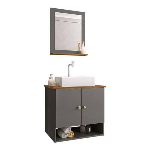 Gabinete Arm Banheiro Deli 2 Portas com Cuba Torino Branca - Cinza