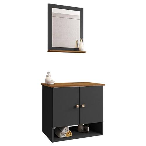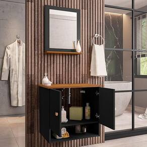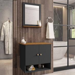 Material da espelheira: MDP de 12 mm no painel e 15 mm na prateleira com espelho de 03 mm de espessura;