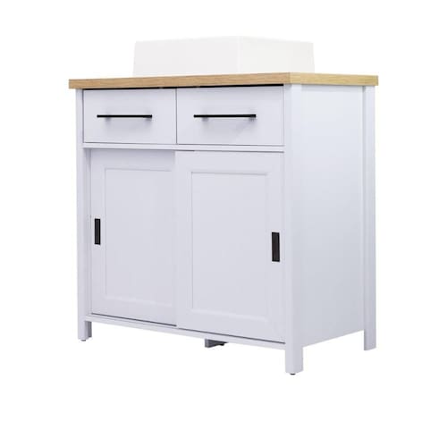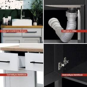 - Cuba em cerâmica branca que suporta até 20 kg.