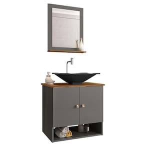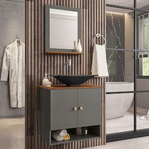 Material da espelheira: MDP de 12 mm no painel e 15 mm na prateleira com espelho de 03 mm de espessura;