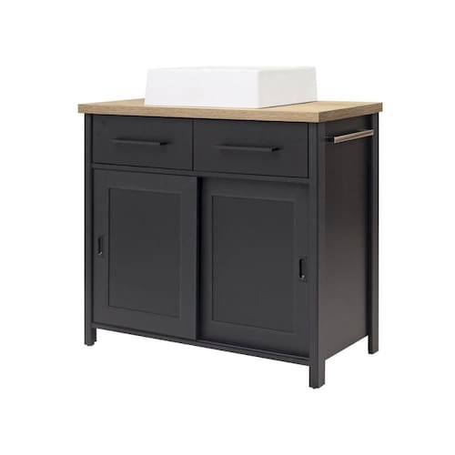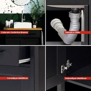 Com duas gavetas e duas portas, você terá espaço suficiente para armazenar todas as suas necessidades de higiene pessoal, como toalhas, produtos de limpeza e cosméticos. A cuba sobreposta proporciona um toque de elegância e sofisticação para o seu banheiro.
