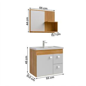 Dimensões da espelheira: 55 cm(L) x 44 cm(A) x 13,7 cm(P);