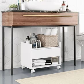 Você está procurando um móvel versátil, prático e bonito para sua casa? Então você vai adorar o Armário Gabinete Multiuso Para Banheiro Ivy, este móvel multifuncional que pode ser utilizado em vários ambientes, como Gabinete para Banheiro ou Mesa de Cabeceira. Ele é fabricado em 100% MDF, com chapa de 15mm e acabamento BP, que garante mais resistência e facilidade na limpeza. Ele possui rodízios que permitem mover o móvel com facilidade, e uma gaveta com puxador passante, que dá um toque de minimalismo e sofisticação ao armário. O Armário Gabinete Multiuso Para Banheiro Ivy tem espaço suficiente para guardar seus produtos de higiene pessoal, toalhas, cosméticos, livros e muito mais. Ele vai deixar o seu banheiro mais organizado e charmoso. Não perca essa oportunidade e compre já o seu!