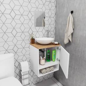 O Gabinete Germânia 40cm possui possui um amplo espaço intermo para organizar seus itens de higiene pessoal com facilidade e praticidade. Além disso, sua estrutura suspensa é uma excelente escolha para otimizar o espaço do seu banheiro, conferindo um ar contemporâneo e elegante à sua decoração.