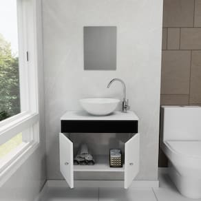 Não Inclusos: Espelho, Torneira, objetos de decoração, acabamento do ralo e sifão. Acabamento da Porta: BP Ambiente Principal: Banheiro Complexidade da Montagem: Média: pode ser montado por mais de uma pessoa e/ou necessite de maior conhecimento para montagem Cor: Preto Cor do Produto: Preto Cor Interna: Branco Escala de Brilho: Brilhante Escala de Brilho da Porta: Brilhante Itens Inclusos: Gabinete com Cuba ABS, Kit de Montagem e Manual Linha ou Coleção: Sevilha Manual de Montagem e Instalação: https://product-hub-prd.madeiramadeira.com.br/926140/documents/9a00de50-9795-4d28-8034-7fde1abce1552170179588117218498997671.pdf Material da Porta: MDP Material do Puxador da Porta: ABS Material Principal: MDP Necessita Montagem: Sim Origem do Produto: Nacional Peso: 10 kg Possui Espelho: Não Possui Pés: Suspenso Possui Portas: 02 Possui Prateleiras: Não Recomendações de Uso, Manutenção e Limpeza: Limpeza Regular: Utilize um pano macio levemente umedecido com água e sabão neutro para limpar o gabinete. Evite Produtos Abrasivos: Não utilize produtos de limpeza abrasivos, solventes ou produtos químicos agressivos, pois podem danificar o acabamento do MDP. Secagem Adequada: Após a limpeza, seque imediatamente o gabinete com um pano seco para evitar que a umidade se acumule na superfície. Sapatas Niveladoras: Não Sistema de Montagem: Parafusos e Cavilha Suporta Até (kg): 30 kg Tipo de Dobradiça/Corrediça da Porta: Aço Tipo de Porta: Bater Tipo de Puxador da Porta: Externo Marca: Brovalia