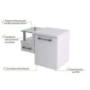 Sobre o ProdutoGabinete Legno 630Descrição do Produto:O Gabinete Legno 630 GTLG630 possui 01 porta e 01 gaveta lateral, além do tampo de apoio em vidro linha Legno combina a leveza do branco e detalhes em vidro com tons amadeirados, conferindo uma personalidade contemporânea aos móveis de design minimalista e traços retos. Produtos que aliam funcionalidade e praticidade ao seu dia a dia são características marcantes desta coleção!Itens Inclusos:1 GabineteDimensões dos Produtos:Gabinete Legno 630: 65 x 43 x 51 cmInformações Logísticas (Comp. X Prof. X Alt.) 47 x 47 x 55 cm - Peso: 19,91 KgPeso Total: 19,91 KgObservações:Não acompanha acessórios decorativos. Imagens meramente ilustrativas.Informações Técnicas / Características:- Cor do Produto: Perffect Acetinado- Cor Predominante: Branco- Marca: Compace- Modelo: GTLG630- Linha: Legno- Material: Mdp - Acabamento: Perffect Acetinado- Escala de Brilho: Fosco- Fita de Borda: Pvc c/colagem PUR- Possui Portas: 1- Tipo de Porta: Bater- Tipo da Dobradiça: Metálica- Possui Gavetas: 1- Tipo da Corrediça: Telescópica- Possui Chave: Não- Peso Máximo por Gaveta: 3 kg- Material do Puxador: Abs- Possui Prateleiras: 1- Peso Máximo por Prateleira: 05 kg- Possui Pés: Não, suspenso - Possui Vidro: Sim - Furação para Cuba / Lavatório: Não - Suporta Até (kg): 20 kg- Comprimento: 65cm- Profundidade: 43cm- Altura: 51cm - Peso Lí.: 18,45Kg- Recomendações de Uso, Manutenção e Limpeza: Para a limpeza, utilize flanela seca ou pano macio levemente umedecido em água. Utilize um pano seco em seguida. Evite com produtos químicos (solventes, thinner, acetona, etc) e não utilize nenhum tipo de esponja de aço.- Necessita de Montagem: Sim / Acompanha Manual de Montagem- Complexidade da Montagem: Média: pode ser montado por mais de uma pessoa e/ou necessite de maior conhecimento para montagem.- Garantia: 6 meses