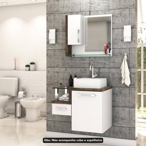 Gabinete Armario Para Banheiro Legno 630 (somente Balcao) Branco Chess C/carvalho Dark