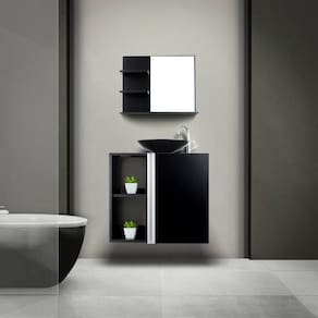 E para deixar tudo ainda mais prático, o gabinete é suspenso, o que facilita a limpeza do banheiro.