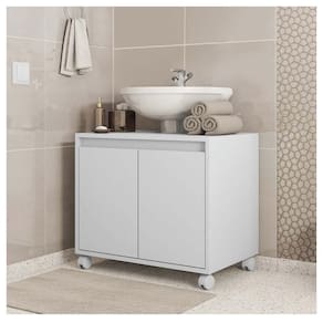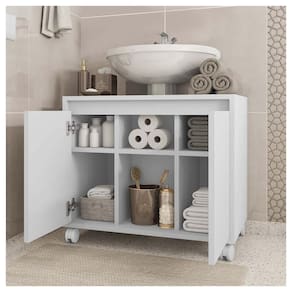 O Gabinete Armario Clean se adapta a sua necessidade, seu design permite que o gabinete fique posicionado abaixo do lavatorio entre a coluna. O Armario possui 6 divisorias com 3 prateiras permitindo guardar objetos. Feito em MDP FF 15MM garantindo mais durabilidade e resistencia ao produto.