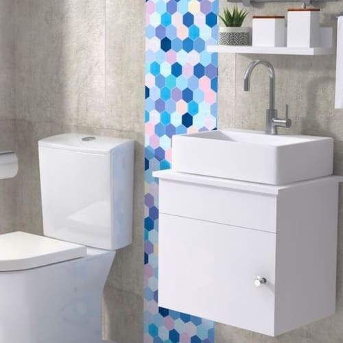 O gabinete de 44cm com cuba é uma solução prática e elegante para banheiros compactos. Com design moderno e estrutura resistente, ele oferece funcionalidade ao armazenar itens de higiene e beleza, mantendo o ambiente organizado. Acompanha uma cuba de qualidade, ideal para pequenos espaços, e pode ser combinado com diversos estilos de decoração, proporcionando um visual sofisticado e harmonioso ao banheiro.