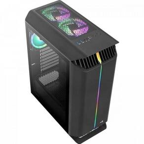 Gabinete Atx Gladiator Aerocool Gabinete de alto desempenho com painel lateral de vidro temperado para mostrar o interior de seu equipamento. Suporta refrigeração líquida na parte frontal, superior e traseira do case para um resfriamento de eficiência máxima. Vem equipado com dois ventiladores ARGB de 12 cm na parte superior e um ARGB de 12 cm na parte traseira do gabinete. Seus ventiladores RGB endereçáveis podem ser controlados de duas maneiras: botão de controle RGB LED ou placa-mãe RGB endereçável. Inclui um hub de controle ARGB de 6 portas para conectar e controlar seus ventiladores ARGB.