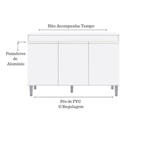 O Balcão Gabinete de Pia 120cm 3 Portas Manu - AJL Móveis integra-se com os demais móveis para criar um ambiente perfeito. Este Balcão com Tampo pode armazenar desde ingredientes, potes, acessórios e o que sua necessidade precisar. Tudo isso com estilo e praticidade você vai contar. Agora é o momento perfeito de adquirir este lindo Balcão e funcional para agregar charme, beleza e sofisticação para sua cozinha. Não perca esta oportunidade, peça já o seu.