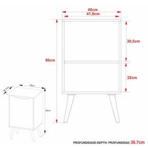 Altura: 80cm | Largura: 45cm | Profundidade: 38,7cm