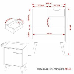 Dimensões do produto montado: Altura: 80cm | Largura: 60cm | Profundidade: 38,7cm *Você pode consultar as medidas detalhadas na imagem técnica do produto. *As cores do produto podem sofrer variações de tonalidade de acordo com as configurações do seu dispositivo.